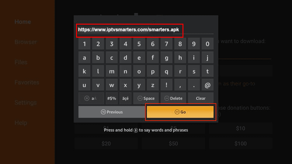 Enter the path firesticktricks.com/smarter and click "Go".